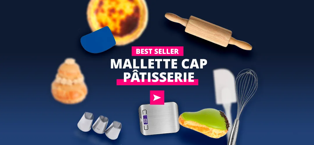Découvrez nos ustensiles de pâtisserie, mallettes CAP cuisine/boulangerie/pâtisserie, et nos ingrédients pour suivre la formation comme un chef !